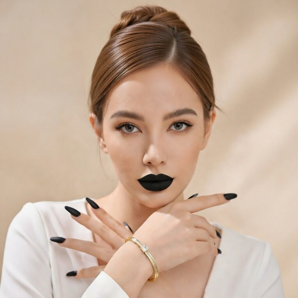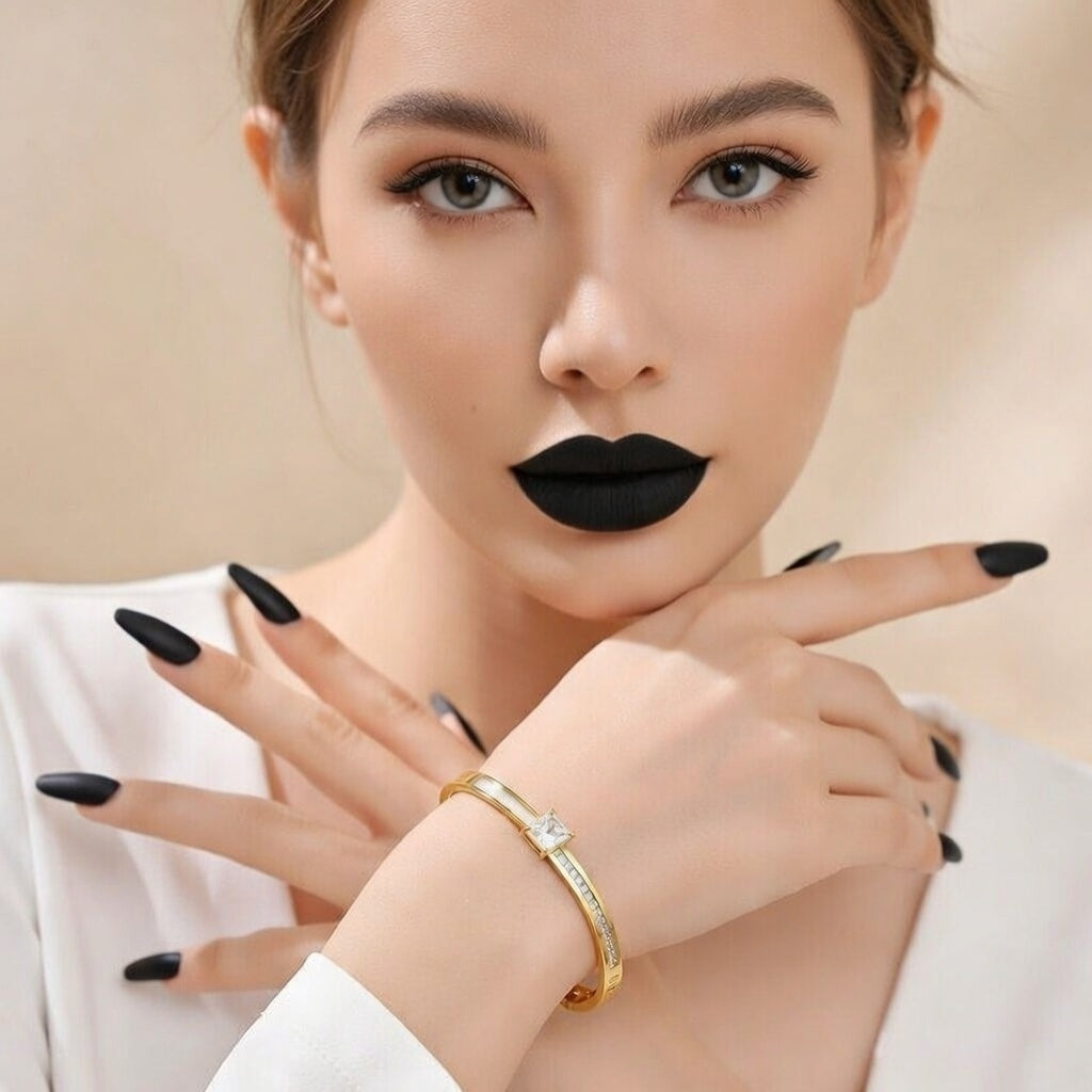 City Girl 18K Gold Plated Stainless Steel, Vacuum Electroplating Shell, Zircon Round Line Polished, Casual Flip Open, For Women