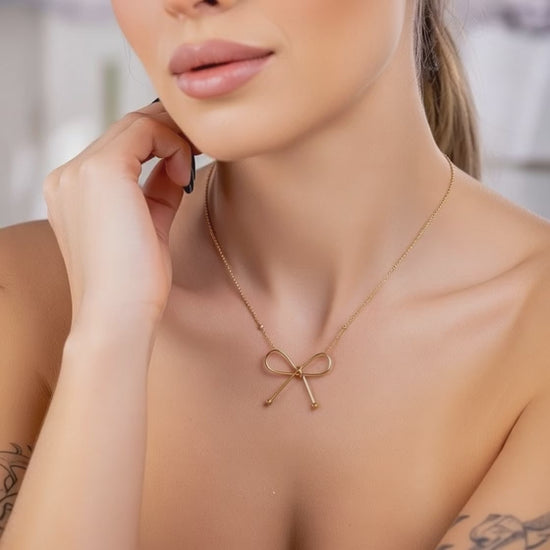 18K gold-plated bow pendant necklace