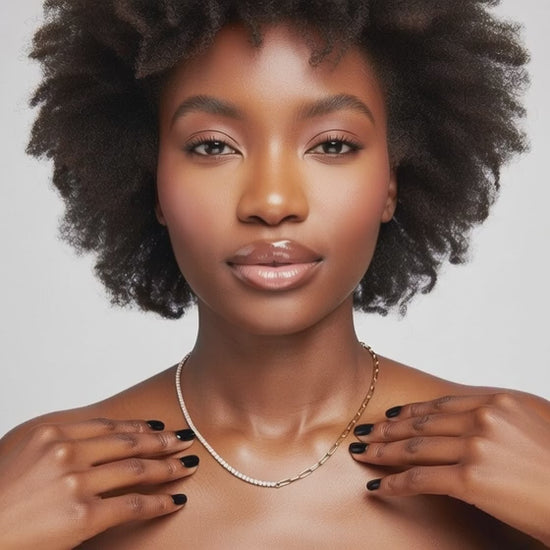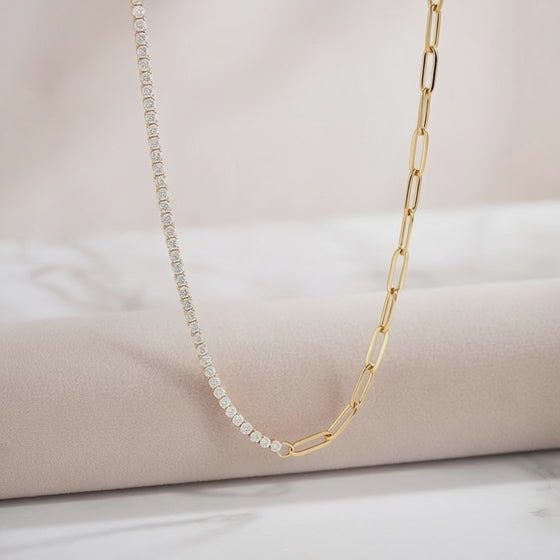 Color: Zircon Chain Spliced Paper Clip Necklace - Gold - White Zircon