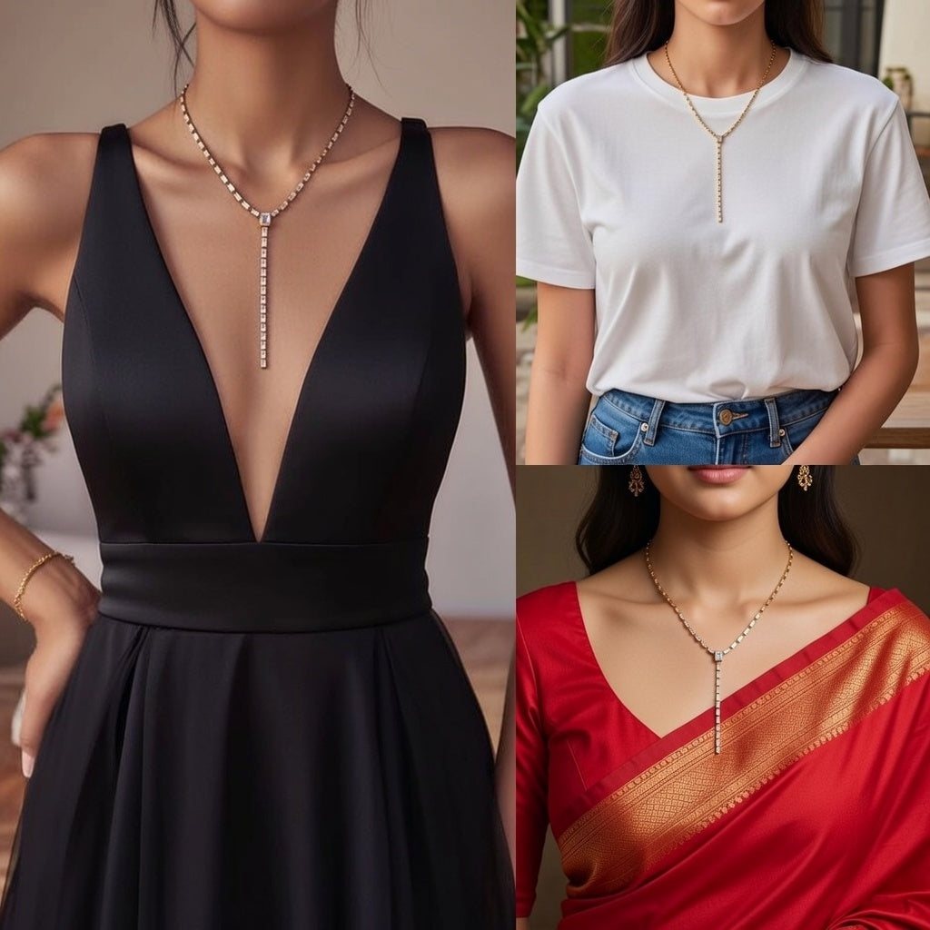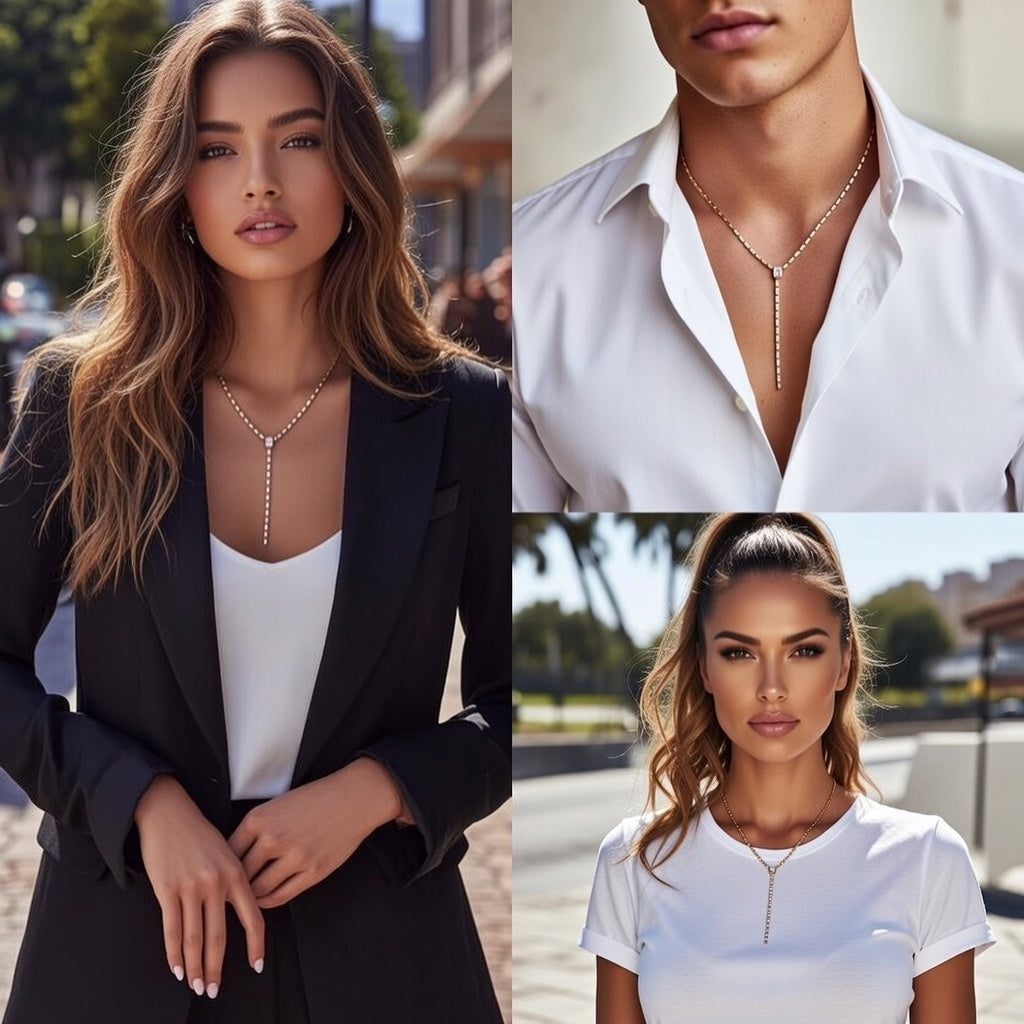 18K Gold Stainless Steel Zirconia Square Y-Chain Necklace 40+5cm Vacuum Plated Real Gold Pendant
