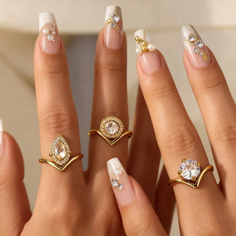 Bezel Setting 304 Stainless Steel Gold Plated Vacuum Electroplating, Women's Zircon Ring