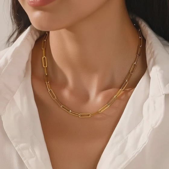 Block Style mid size stainless steel necklace in gold