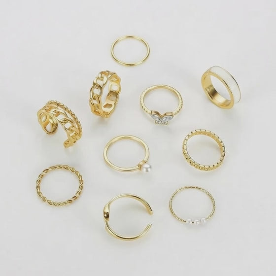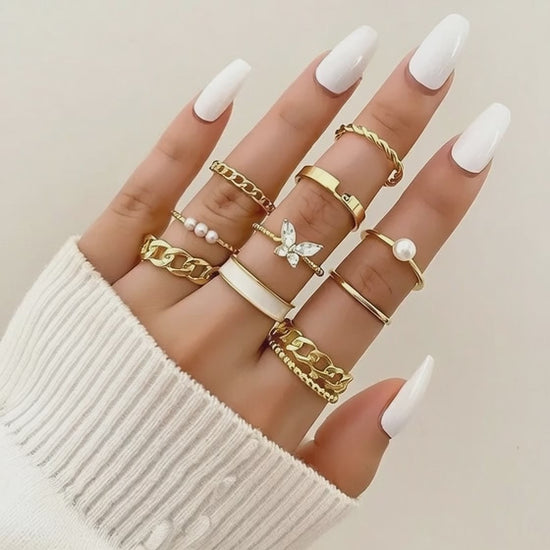 (9 Piece Ring Set) Simple Style Geometric Alloy Plating Inlay Artificial Pearls Rhinestones for Women