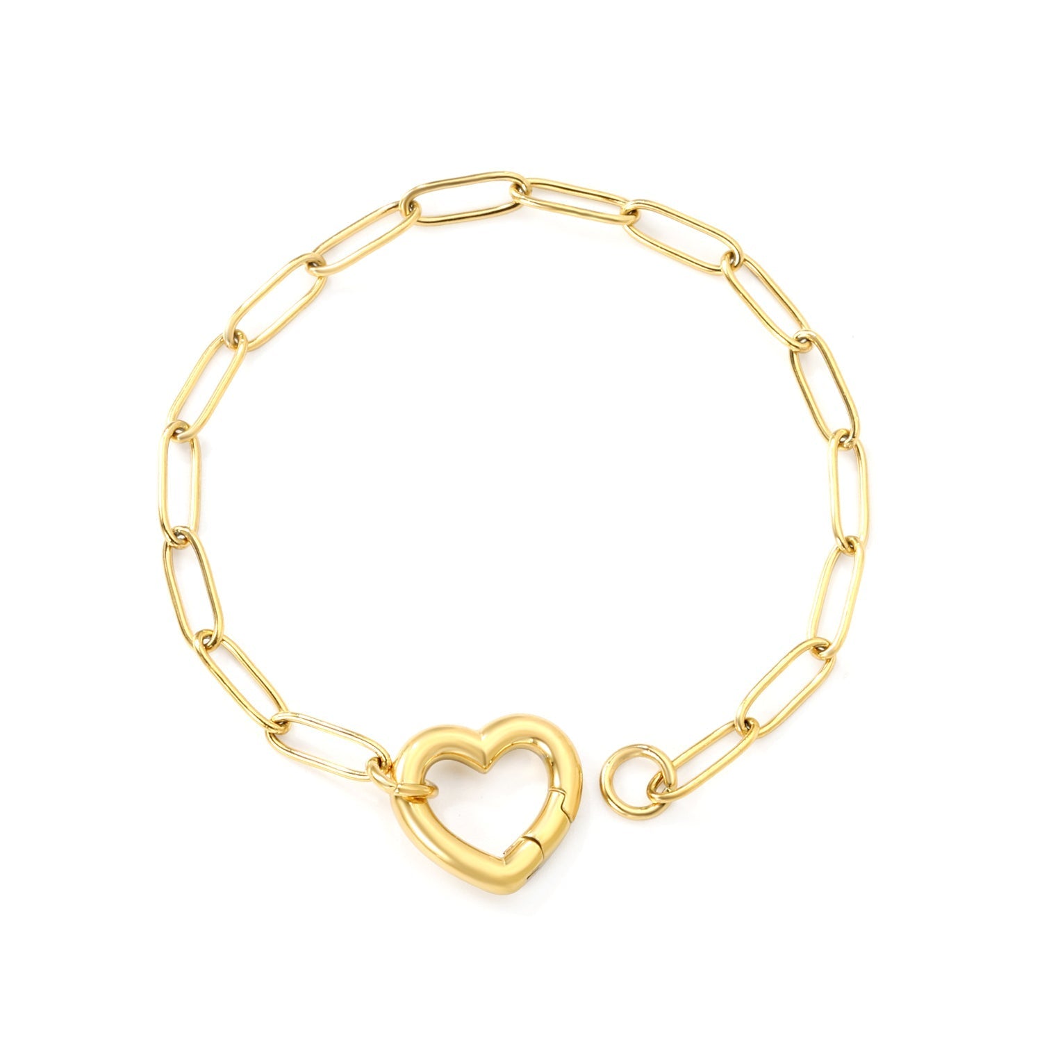 This golden bracelet features a durable 3*17*16mm wire and a charming 18+3cm+6mm peach heart clasp accessory. The round plaque design adds a touch of elegance to any outfit. With a secure clasp and adjustable length, this bracelet is perfect for any occasion.